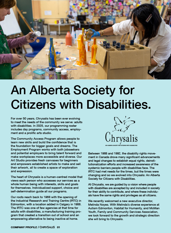 An Alberta Society for Citizens with Disabilities. Read Article Go to business Chrysalis Go to business